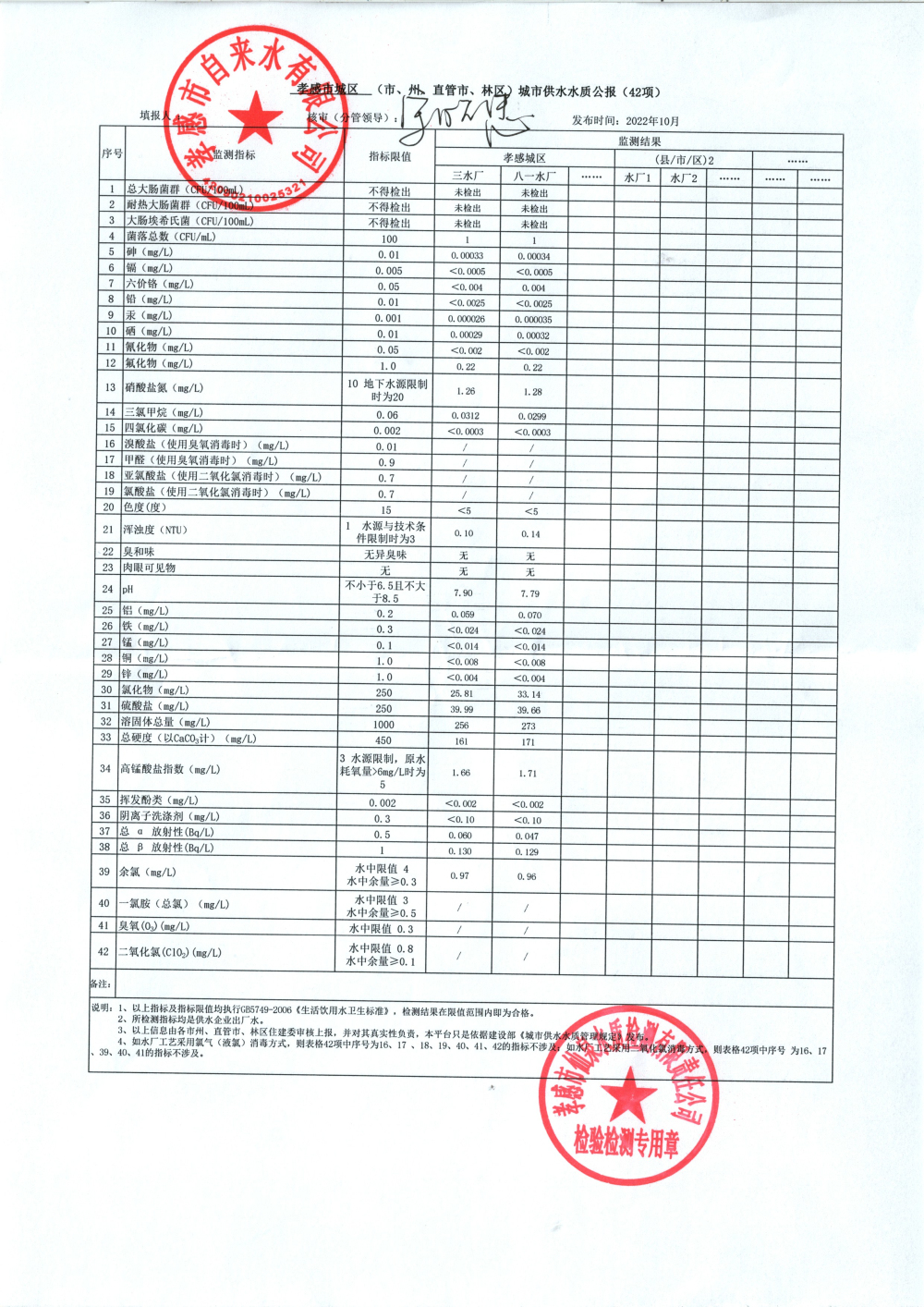 2022年10月水質(zhì)報(bào)告