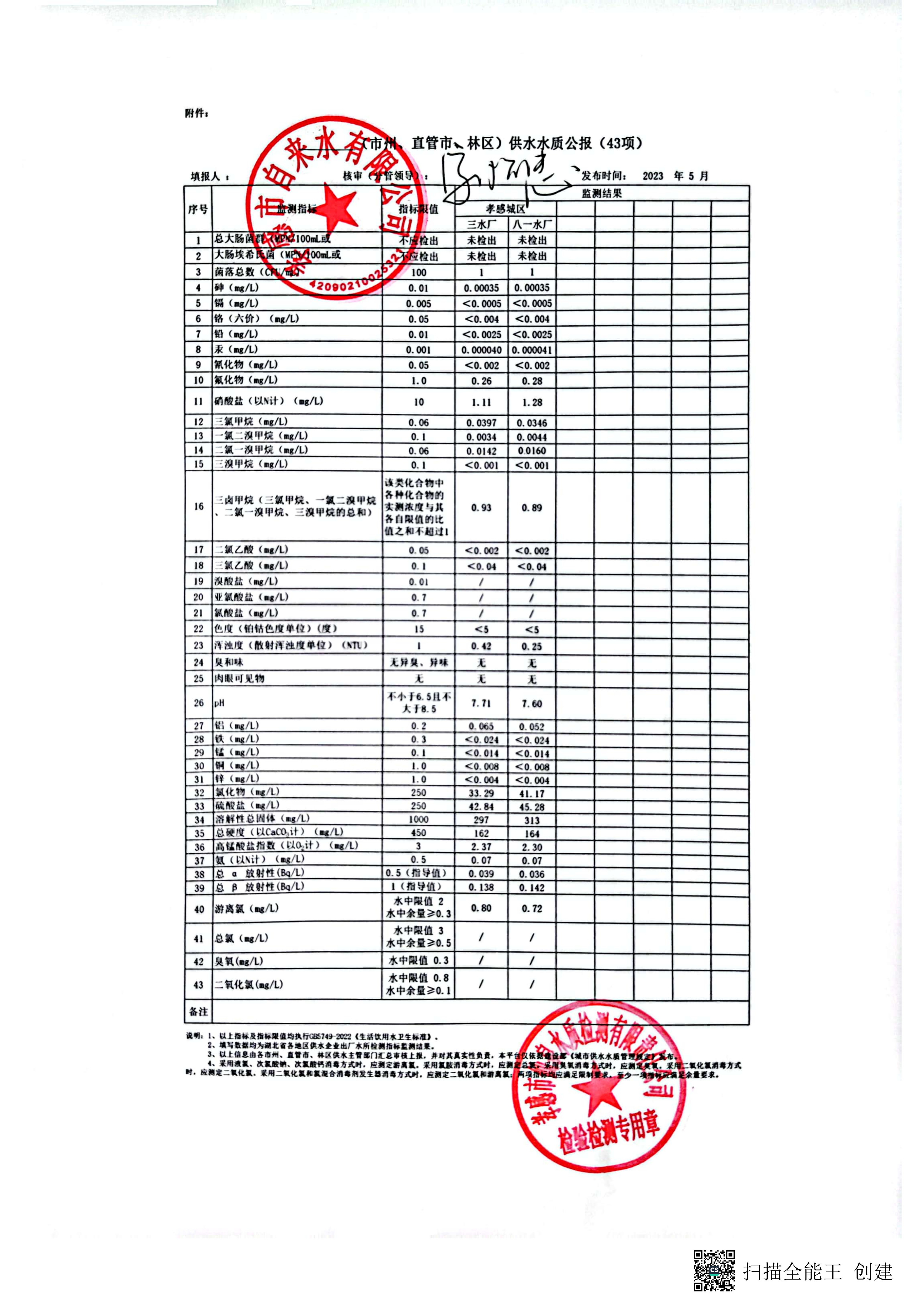 2023年5月水質(zhì)報告