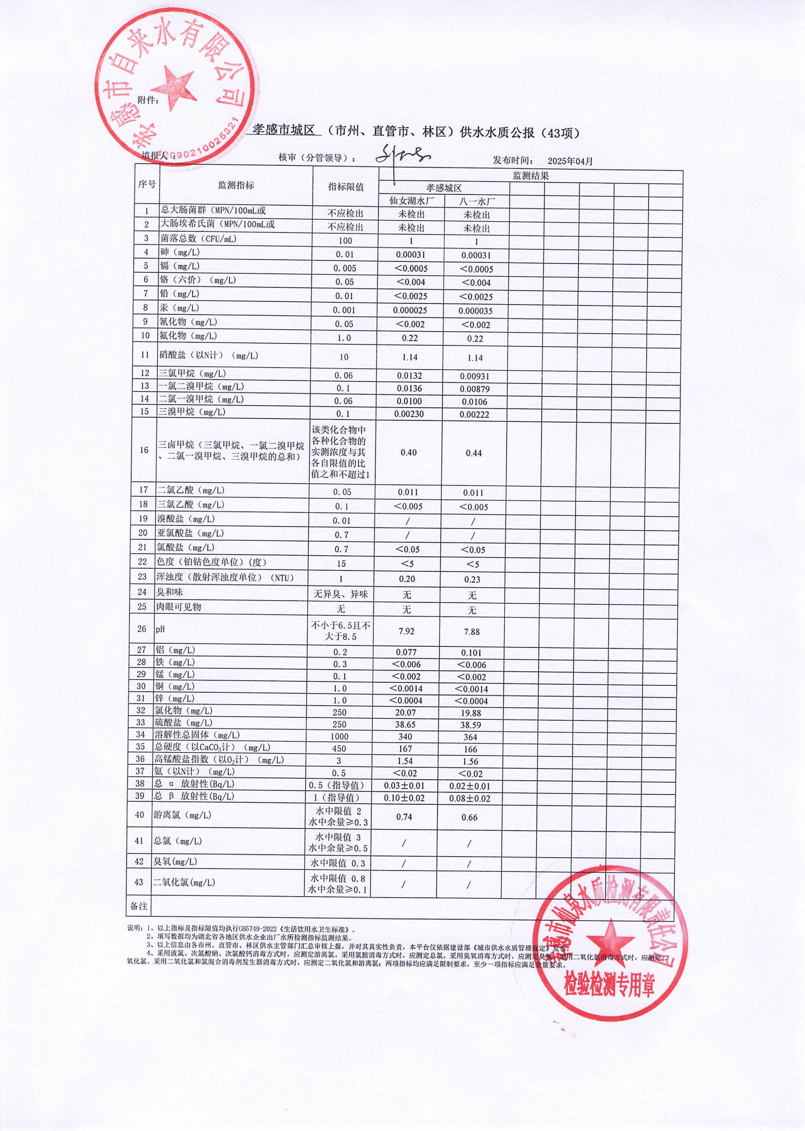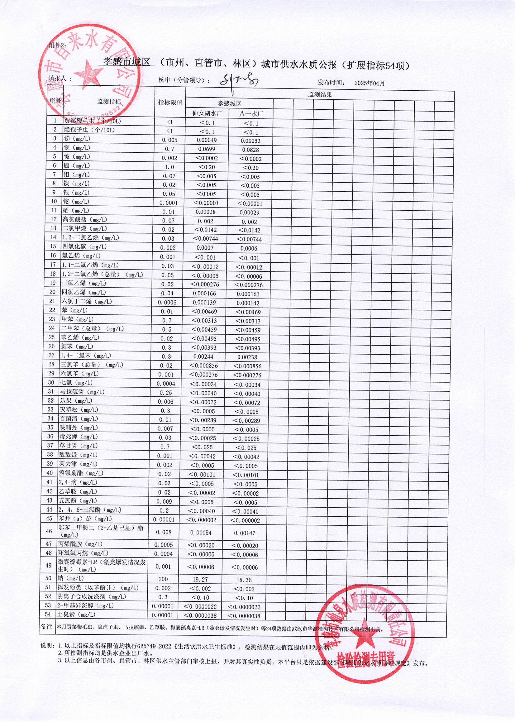 2025年4月水質(zhì)報(bào)告