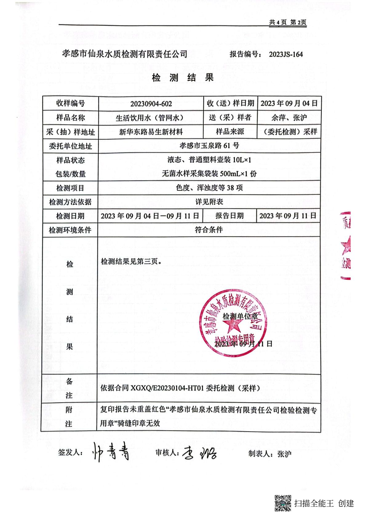 2023年9月檢測報告