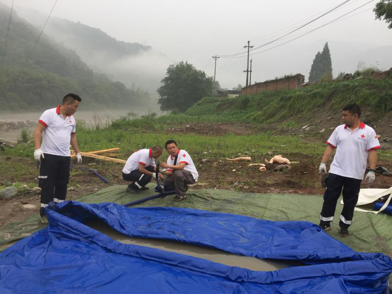 25日下午接到指令后,包括何剛在內的32名紅十字救援服務隊隊員分別從成都和南充出發前往位于雅安天全縣的省消防救援總隊前方指揮部報到,接受任務配合消防官兵開展為期三天的救援工作。在供水救援項目中,何剛作為此次演練的技術指導,現場指導地震災害后的應急供水,在雅安天全現場取水進行作業,為此次演練提供生活用水,為消防官兵提供了急救保障。