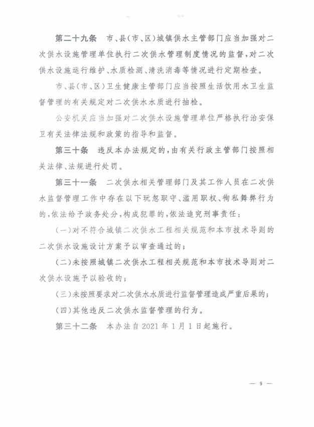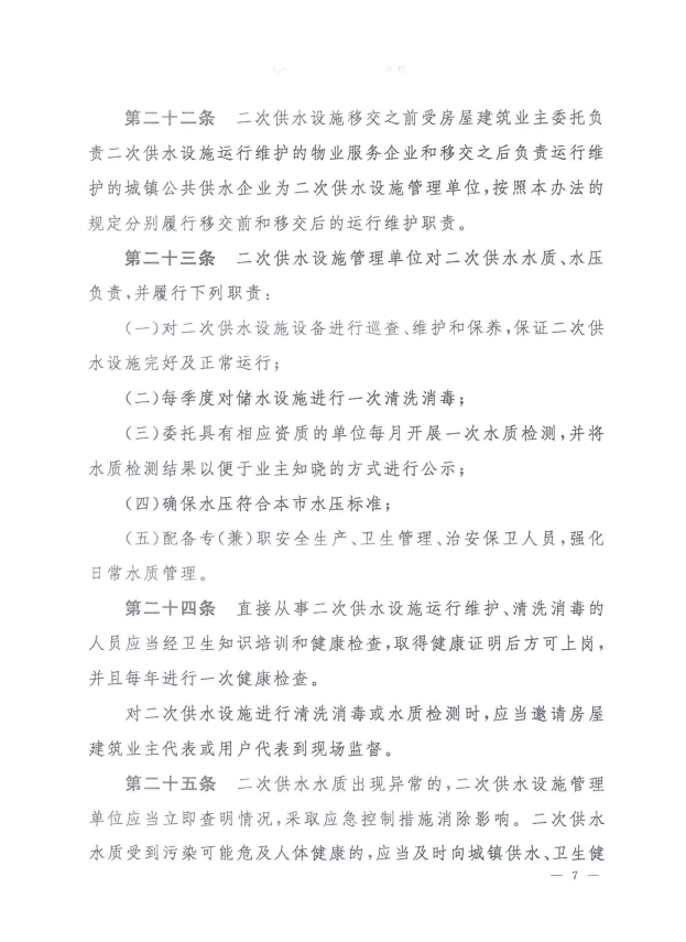 孝感市城鎮居民住宅二次供水管理辦法